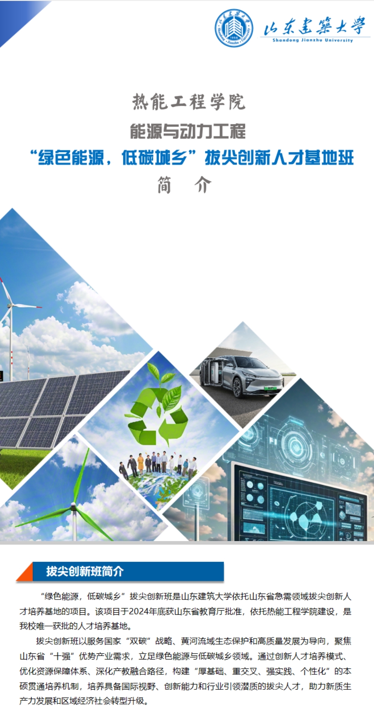 山东建筑大学“绿色能源,低碳城乡”拔尖创新人才培养基地班 2026年招生启动