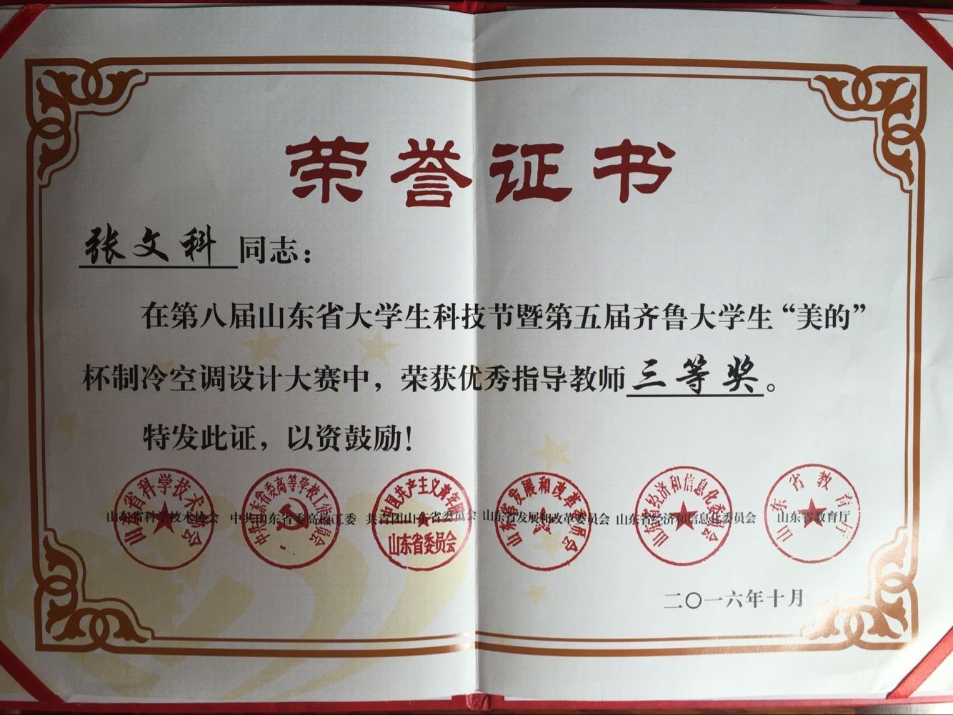 获奖:第八届山东省大学生科技节竞赛优秀指导教师三等奖