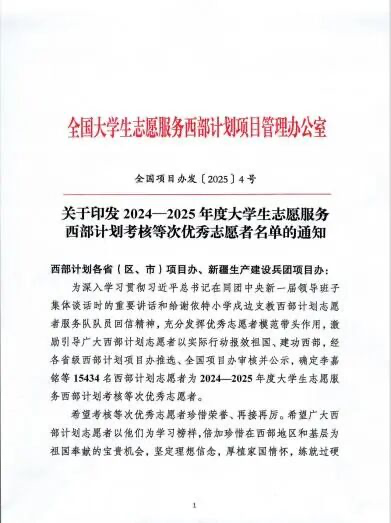 近日,全国大学生志愿服务西部计划项目管理办公室发布《关于2024—2025年度大学生志愿服务西部计划考核等次优秀志愿者名单的通知》,商学院2023届市场营销专业左秉聪、2023届会计学专业崔璨、2024届市场营销专业王浩阳3名毕业生,凭借在西部服务期间的扎实履职、荣耀登榜,获评全国大学生志愿服务西部计划考核优秀等次!彰显了新时代学子服务国家、奉献基层的使命担当与专业素养,是学院“经世致用”育人理念深度融合的生动实践。