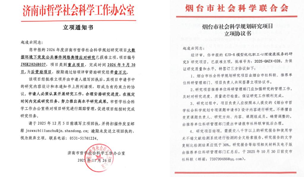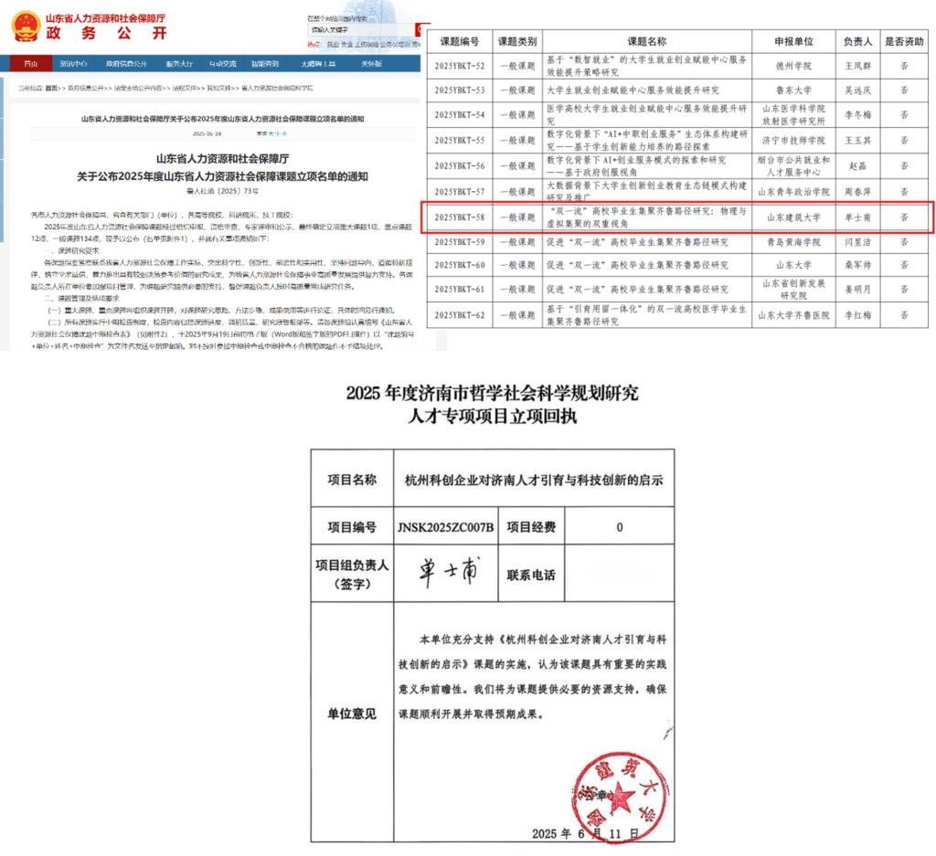 二是科研立项实现多层次突破。学院教师在国家级、省部级项目中屡获佳绩:王冬玲、杨金凤两位老师获批国家社科基金项目,王莉莉教授获立中国经济改革研究基金会重大课题,李新田、李晓婷两位老师分别获批山东省社科联一般项目与青年重点项目,郭洪利老师获批山东省科技合作与交流活动项目,贾广余副处长、冯震老师获批山东海洋开放合作路径和策略研究项目,单士甫老师获批山东省人力资源社会保障课题及济南市哲学社会科学规划研究人才专项课题,赵凌云老师获批济南市、烟台市哲学社会科学规划课题各 1 项。
