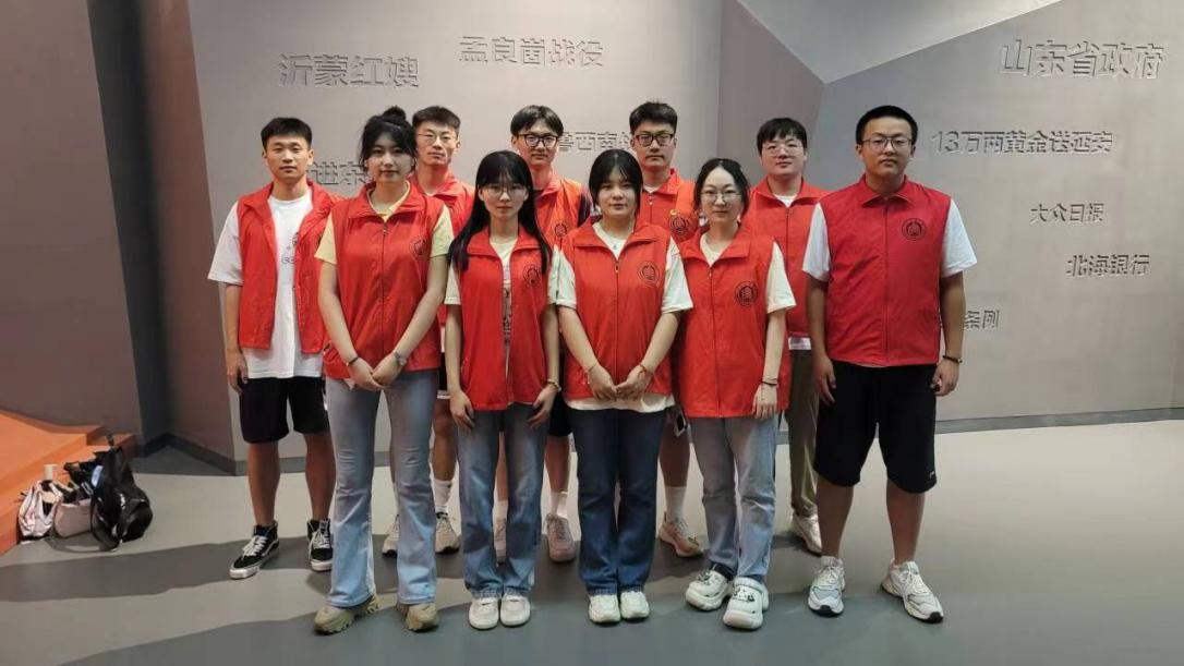 齐鲁大地,红色热土。中国共产党山东历史是中国共产党历史的重要组成部分,正值“红色文化主题月”,团队第二站来到馆藏革命文物14000余件(套)的山东博物馆进行实践活动。团队成员们在山东革命文化主题展厅,作为大学生志愿者,通过陈列展示的史料、文物向前来的参观者们讲解革命历史、宣扬红色精神,得到了不同年龄段参观者们及博物馆工作人员的充分肯定。