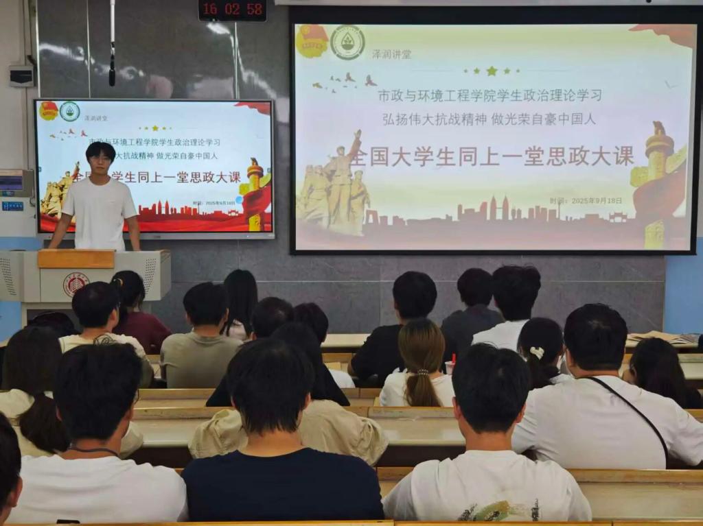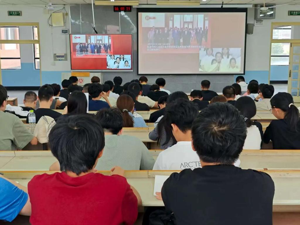 为纪念中国人民抗日战争暨世界反法西斯战争胜利80周年,引导青年学子铭记历史、弘扬抗战精神,做光荣自豪的中国人,9月18日,学院在博文501、503教室举办“全国大学生同上一堂思政大课”政治理论学习活动。本次活动由本科生第二党支部党员同志马家骏、冯战胜领学,2024级本科学生代表参加。