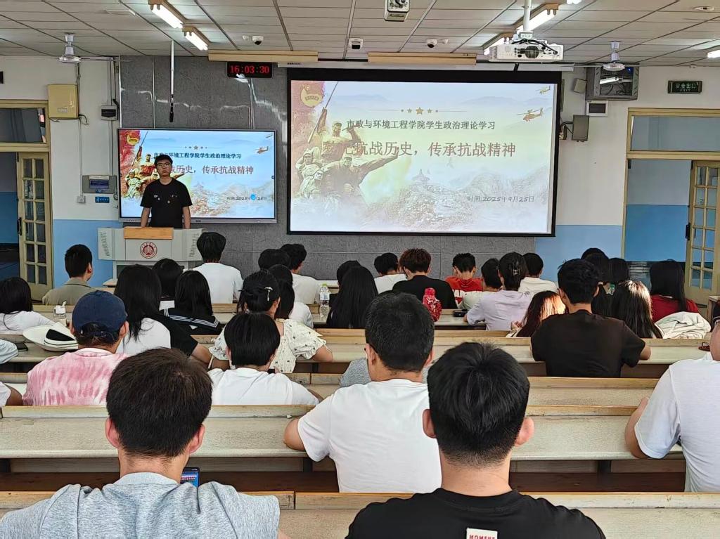 活动伊始,领学党员赵一凡、马家骏上台发言。他们以丰富的历史资料、翔实的数据和鲜活的案例,从“九一八事变”到“七七事变”,从淞沪会战到百团大战,全面回顾了中国人民艰苦卓绝的抗战历程,深刻阐述了抗战精神的内涵与时代价值。在讲述过程中,重点剖析了抗战时期中华儿女不畏强暴、血战到底的英雄气概,以及天下兴亡、匹夫有责的爱国情怀,让同学们仿佛穿越时空,回到了那段硝烟弥漫的岁月,真切感受到了先辈们为民族独立和解放所做出的巨大牺牲。