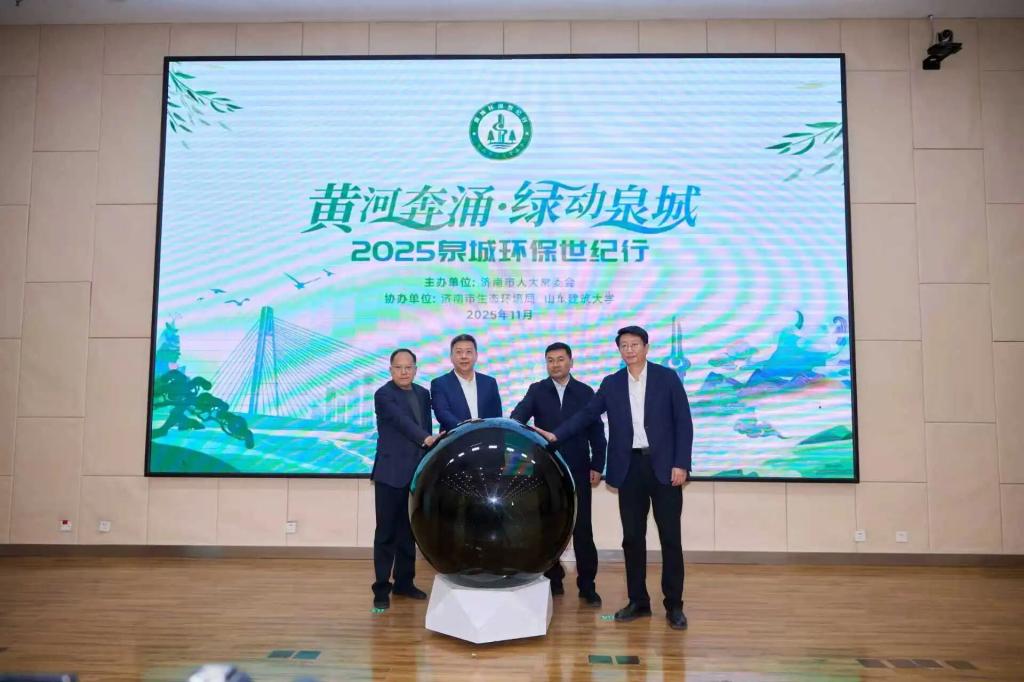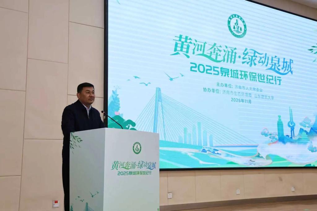 11月19日上午,2025年泉城环保世纪行活动在山东建筑大学启动。本次活动以“黄河奔涌・绿动泉城”为主题,由济南市人大常委会主办,济南市生态环境局、山东建筑大学市政与环境工程学院协办。