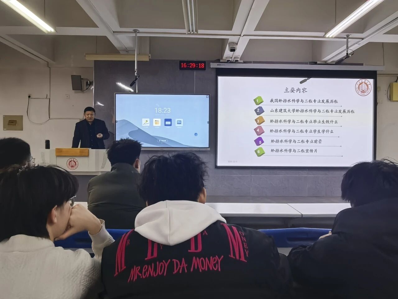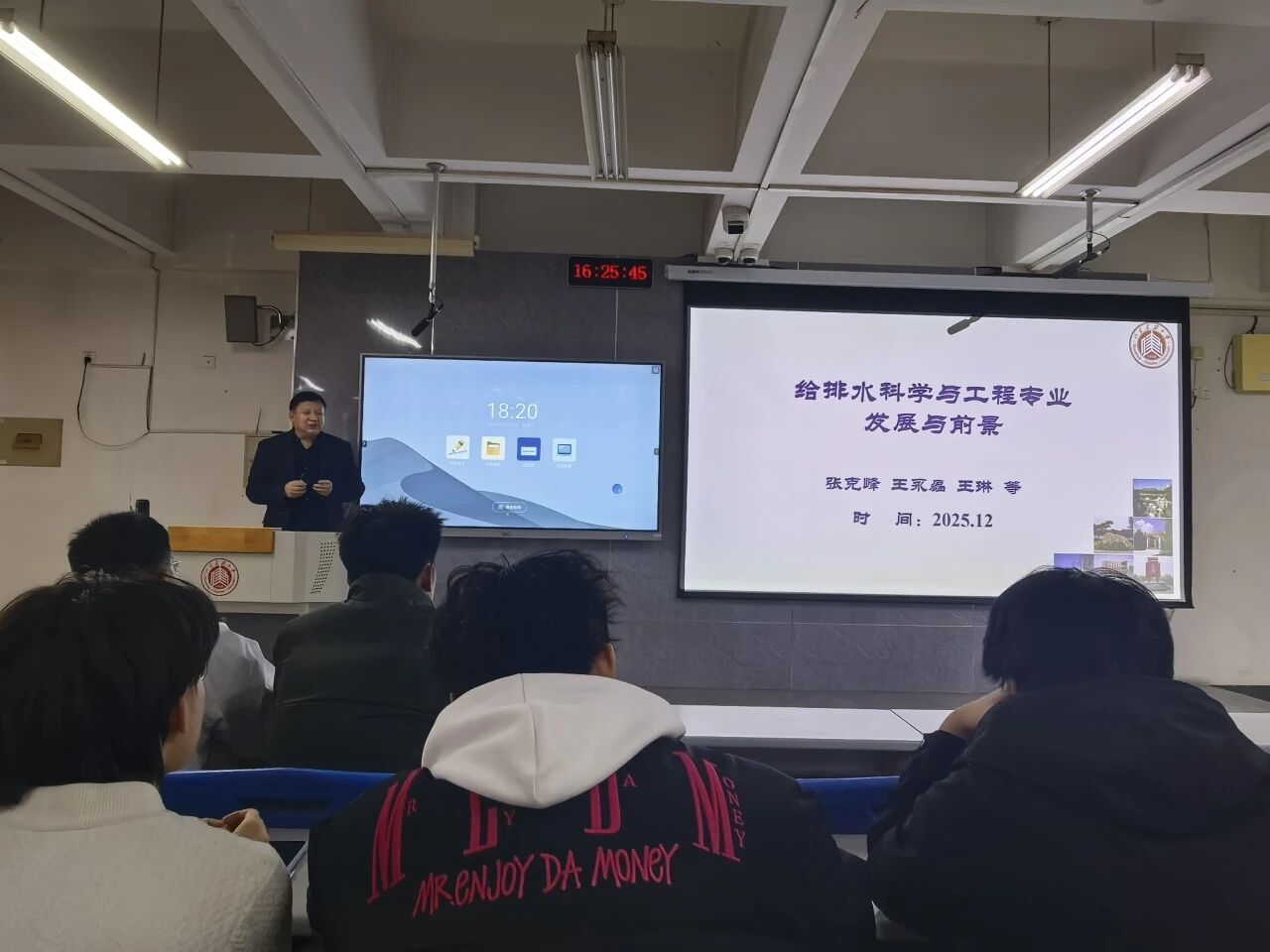 为帮助2025级新生精准把握专业定位、明晰成长路径,12月5日下午,学院特邀张克峰教授为给排水科学与工程专业25级本科生进行专业认知教育。讲座围绕专业内涵、就业前景、人才培养等核心内容展开,以系统讲解与生动展示相结合的方式,为水工专业学生送上了一堂兼具深度与温度的专业启蒙课。