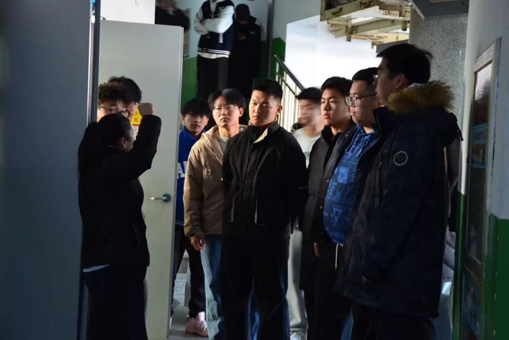 随后,学校工作人员对宿舍楼内消防警示铃、应急广播等设施进行全面介绍,并讲述如何测试设备灵敏度与运行状态,对发现的问题及时上报学校,确保所有应急设备时刻处于良好备战状态。