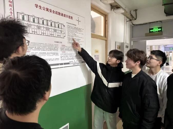 活动中,学院自律会成员结合高校火灾实例,为同学们系统讲解宿舍消防注意事项,重点剖析了电器火灾、疏散通道堵塞等常见隐患,强调“生命通道”保持畅通的极端重要性,提醒大家自觉做到不堆放杂物、不违规用电,从源头杜绝安全风险。随后,工作人员现场展示了应急照明灯、火灾报警器等宿舍常见消防设施,演示了日常自查与报警方法,鼓励同学们主动关注身边消防设备状态,发现问题及时反馈,确保应急设施随时可用。