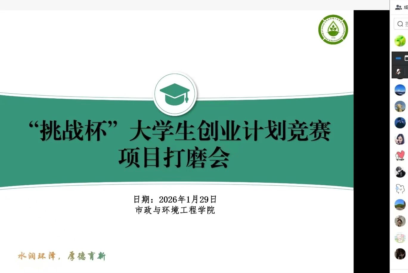 打磨会研讨氛围热烈,持续了3个小时。董颖结合往届案例解读“小挑”评审标准,拆解备赛要点;各参赛团队线上汇报项目背景与阶段性成果,坦诚梳理数据支撑、落地可行性等现存问题。董颖针对各项目存在的不足进行精准点评,从技术优化、方案完善、答辩技巧等方面提出建设性意见,为项目进一步打磨提升指明方向。