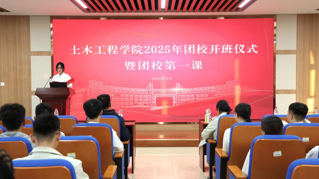 为深入学习贯彻党的二十届四中全会精神,引导广大青年学子在思想淬炼中坚定信念、明确方向,在能力提升中补齐短板、勇于作为,激励青年在新时代征程中坚守初心、挺膺担当,11月13日下午,土木工程学院2025年团校开班仪式暨团校第一课于部重楼五楼会议室隆重举行。学院党委副书记王培森、团委书记蒋衍玺、全体辅导员及团校学员代表参会。会议由学院辅导员郭美虹主持。