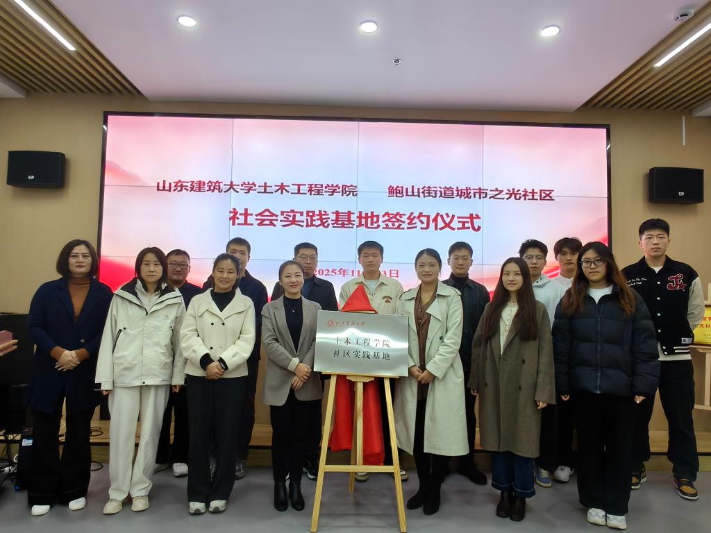 为深化校地协同育人,搭建“高校资源下沉、社区需求对接”的实践桥梁,11月13日上午,山东建筑大学土木工程学院与济南市鲍山街道城市之光社区“大学生社区实践基地”签约仪式。城市之光社区党支部书记、居委会主任曹佳主持仪式,山东建筑大学土木工程学院团委书记蒋衍玺、辅导员郭美虹、刘帅东及社区居民代表、学生代表共同出席活动。