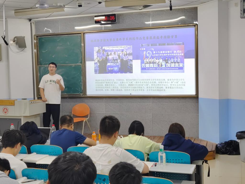 对于赛事答辩,他提醒新生们要提前做好充分准备,熟悉作品的每一个环节,从容应对评委的提问。他还鼓励新生们要勇于尝试,积极参与校赛、省赛、国赛三级选拔,在竞赛中锻炼自己的创新实践能力。