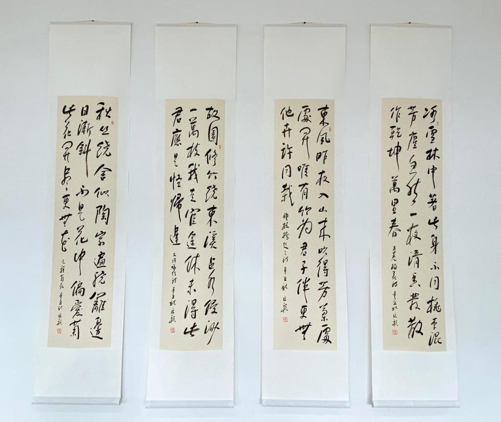 近日,我校艺术学院硕士研究生导师、山东省中国书画艺术等级考试评委、山东教育书法家协会理事谭延祯副教授向图书馆赠送书法作品。谭延祯副教授此次赠送的书法作品共3组,12幅,分别悬挂在图书馆三个研修室。