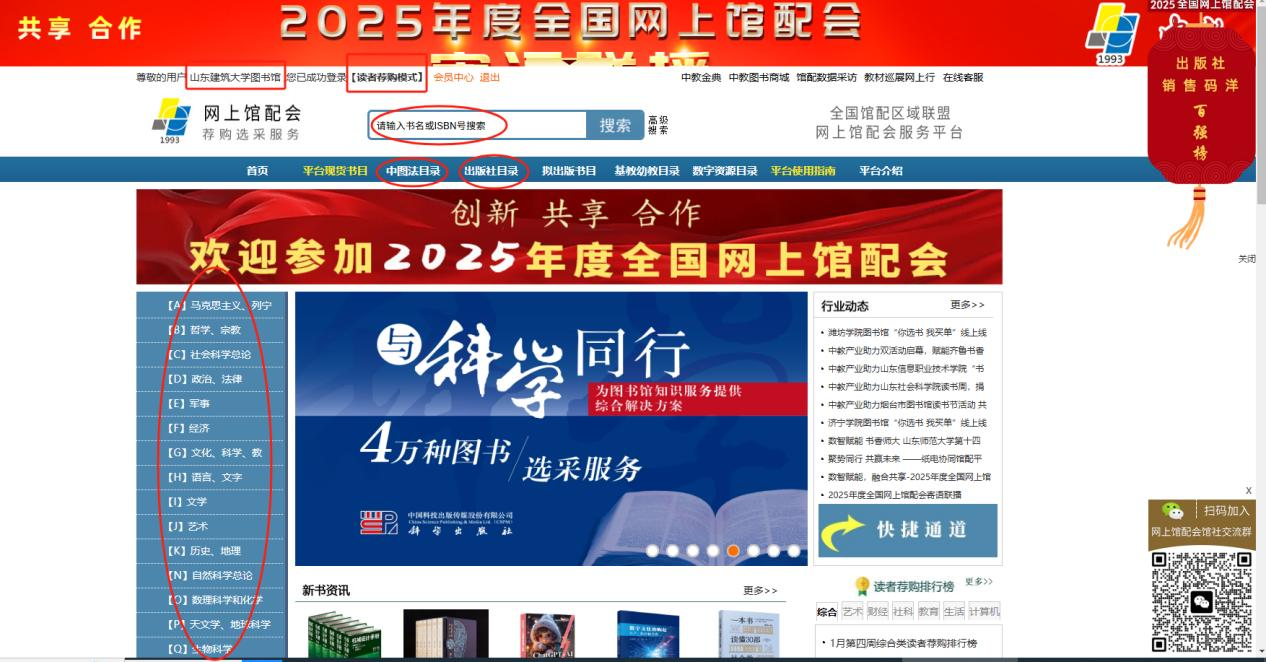 点击中图法(出版社或平台现货书目),选择适宜图书进行荐购。