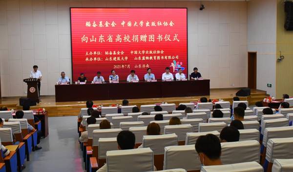 7月14日下午,在第30届书博会开幕前夕,韬奋基金会、中国大学出版社协会向山东省高校捐赠图书仪式在学校博学会堂成功举办。韬奋基金会理事长、全国政协委员聂震宁,中国大学出版社协会理事长、清华大学出版社社长宗俊峰,省教育厅高教处处长李霞,校党委书记陈国前、副校长刘甦出席仪式。仪式由韬奋基金会秘书长张增顺主持。