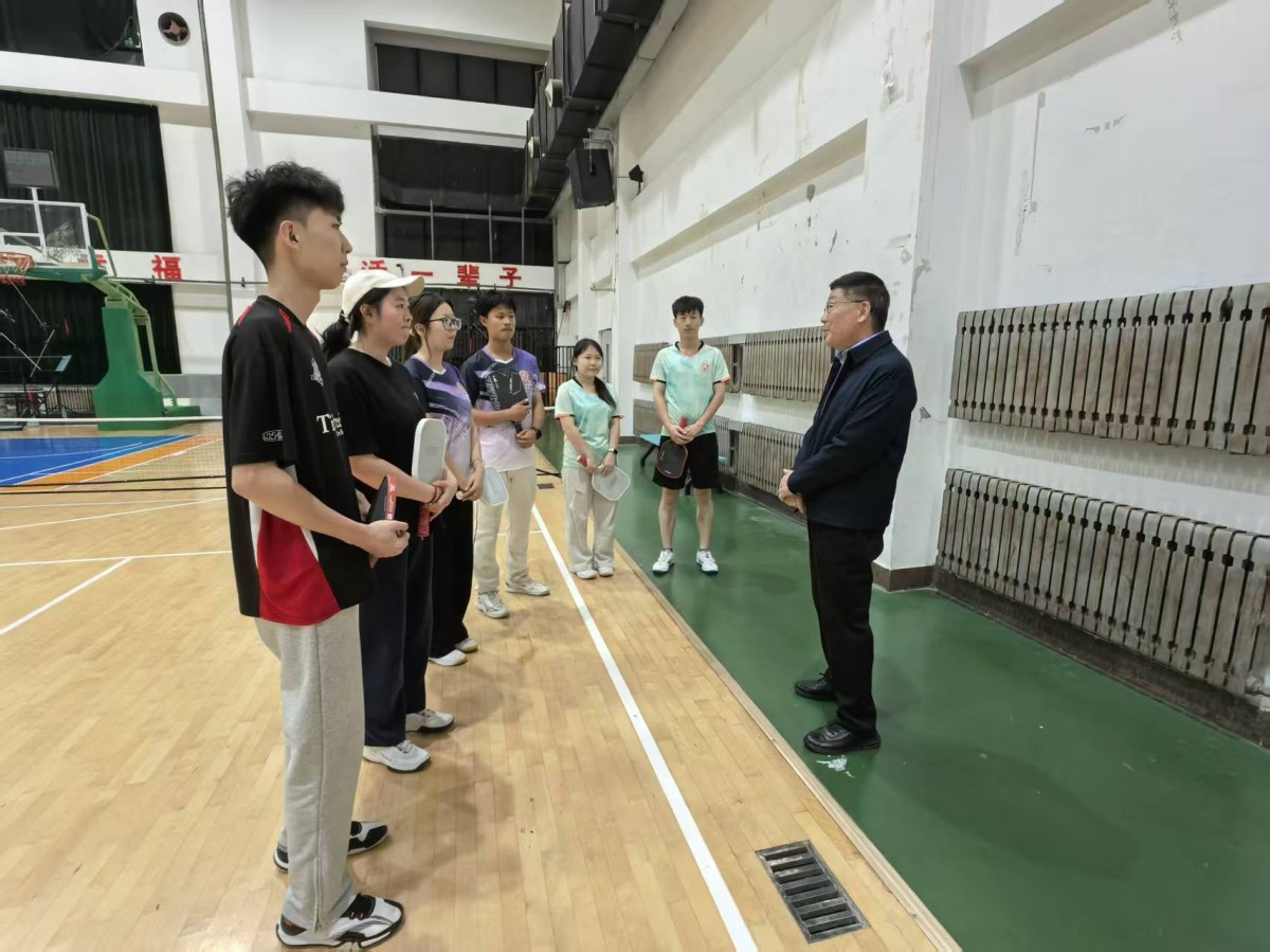 座谈结束后,孙乐为一行实地考察了山东建筑大学匹克球运动场地设施、教学训练开展情况,并走进校园匹克球训练场,与正在训练的师生进行现场互动,孙乐为鼓励同学们努力训练,积极参加各类比赛,以赛促练、以赛促学,并带动身边同学参与到匹克球这项运动中来。