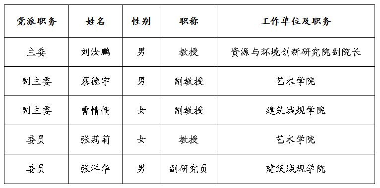 2026年4月成立农工党山东建筑大学支部委员会,刘汝鹏任支部主委,慕德宇、曹情情任副主委,张莉莉、张洋华任委员。