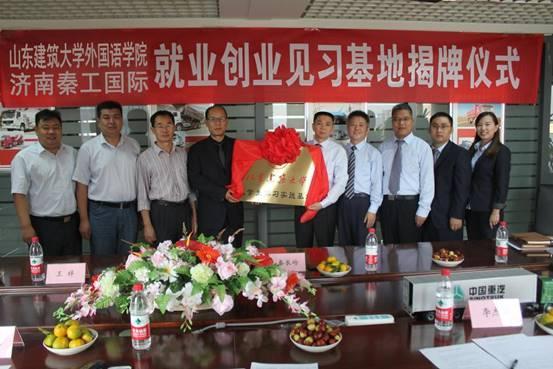 9月15日,外国语学院党总支书记董从银、院长李继民、党总支副书记李杰瑞、副院长高金岭应邀访问秦工国际集团。秦工国际集团董事长秦长岭、总经理王祥接待了院领导一行,双方就共建大学生实习实践基地举行了揭牌仪式并签订校企合作协议书。
