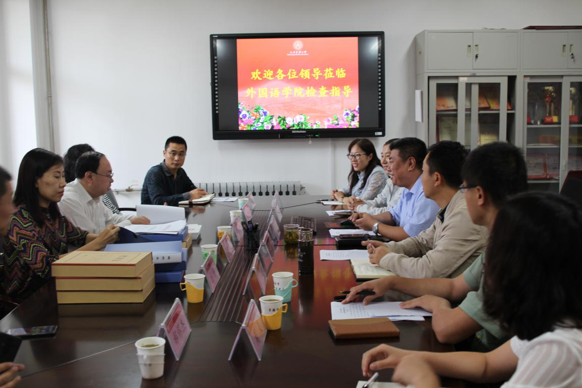 9月21日,省委教育工委办公室副主任刘坤、省委组织部组织二处主任科员巴婷来我校外国语学院督查高校党建工作重点任务落实情况。校党委副书记祖爱民、副校长杨赟出席督查座谈会,校党委组织部、外国语学院有关负责人及党支部书记代表参加座谈。