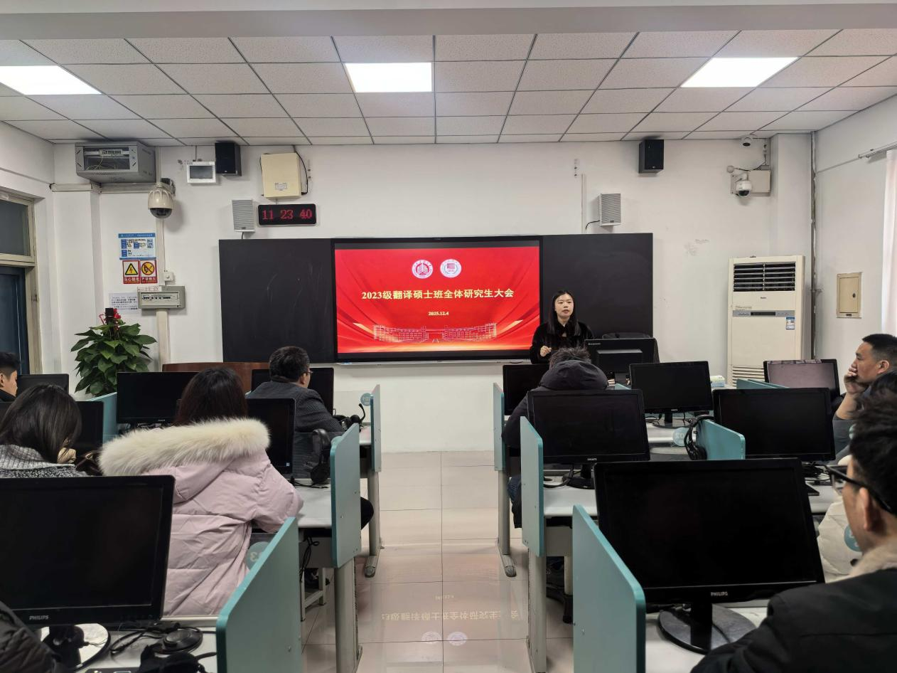 会议开始,钟京伟肯定了同学们的精神面貌、实践态度和专业素养,并指出大家已进入毕业论文与就业签约的关键阶段,需以更高标准、更严要求扎实推进。同学们应继续保持积极进取,深入翻译领域学习与探索,将获得的感悟与发现的问题系统转化为深层次的学术思考,提升论文写作质量,尤其要紧扣论文终稿提交与预答辩两个关键时间节点,主动加强与导师的沟通,全力以赴、保质保量完成论文写作任务。他还叮嘱全体同学,务必将个人的身体健康与平安放在首位,切实提高防范意识,注意人身安全、交通安全与财产安全,警惕各类潜在风险;保持规律作息、强健体魄,以饱满的身心状态迎接未来的挑战。最后,重点强调了毕业生就业推进工作。