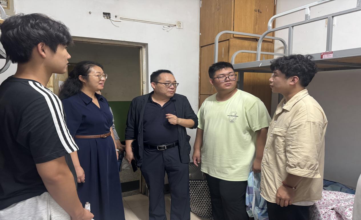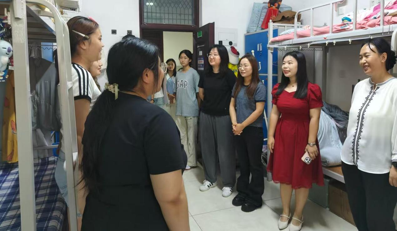 走访过程中,辅导员一行带着对学生的关怀逐间走进宿舍,与学生面对面交流:既细致询问假期生活、返程安全及返校后身心适应情况,倾听并解答学业规划、生活需求、课程衔接、社团参与、奖助政策等方面的困惑;也实地检查宿舍用电安全、消防设施及卫生环境,叮嘱学生规范用电、保持整洁,还协助行李较多的学生整理物品、规划空间,以贴心举动化解开学焦虑。同时,本次走访全程贯穿“双进”工作理念,老师们借此了解学生思想动态与实际需求,拉近师生距离,将思想政治工作和管理服务做到学生“家门口”,既传达学院关怀与期望,也为“双进”工作收集第一手信息、奠定坚实基础,让宿舍成为育人新阵地。