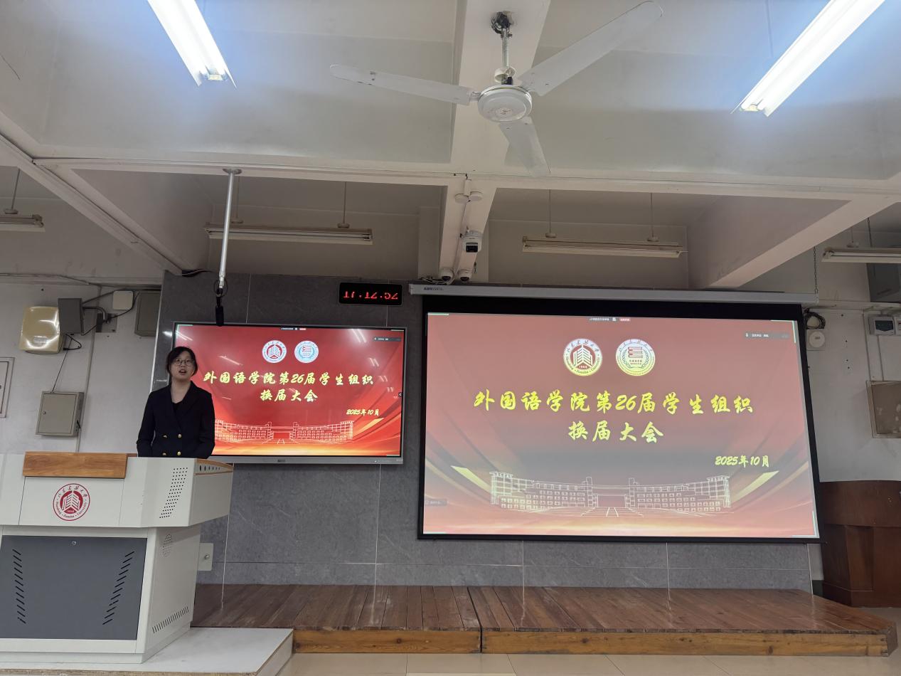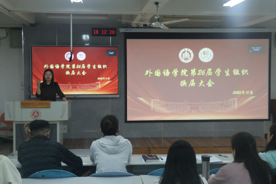 为深化学院学生组织建设,进一步加强学生干部队伍培养,推动学院工作高质量发展,10月14日,外国语学院于外文411开展第26届学生组织换届大会。换届大会由学生工作办公室主任王冰主持,团委书记董亭、辅导员林祖筱潇参加本次大会。
