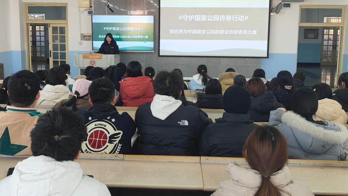 在校内,团队通过多语种宣讲、主题展览、问卷调查等形式深化宣传。映雪长廊旁,主题海报吸引众多师生驻足,志愿者现场讲解并回收《国家公园认知与科普活动参与情况》问卷300余份;室内面向大一新生的专题宣讲会系统阐释全球热带雨林分布、中国雨林作为“物种宝库”的重要价值——仅占国土面积3.2%,却承载全国约25%的物种数与25.8%的生态系统类型,并重点介绍了海南热带雨林“八大奇观”及其保护成效,如2023年尖峰岭分局拍摄到极危物种圆鼻巨蜥,展现生态修复与执法管理机制的创新成果。宣讲引导学生树立生态守护者、文化传播者与科研助力者三类青年角色意识,并发起“#守护国家公园青春行动#”倡议,切实推动生态保护理念深入人心。