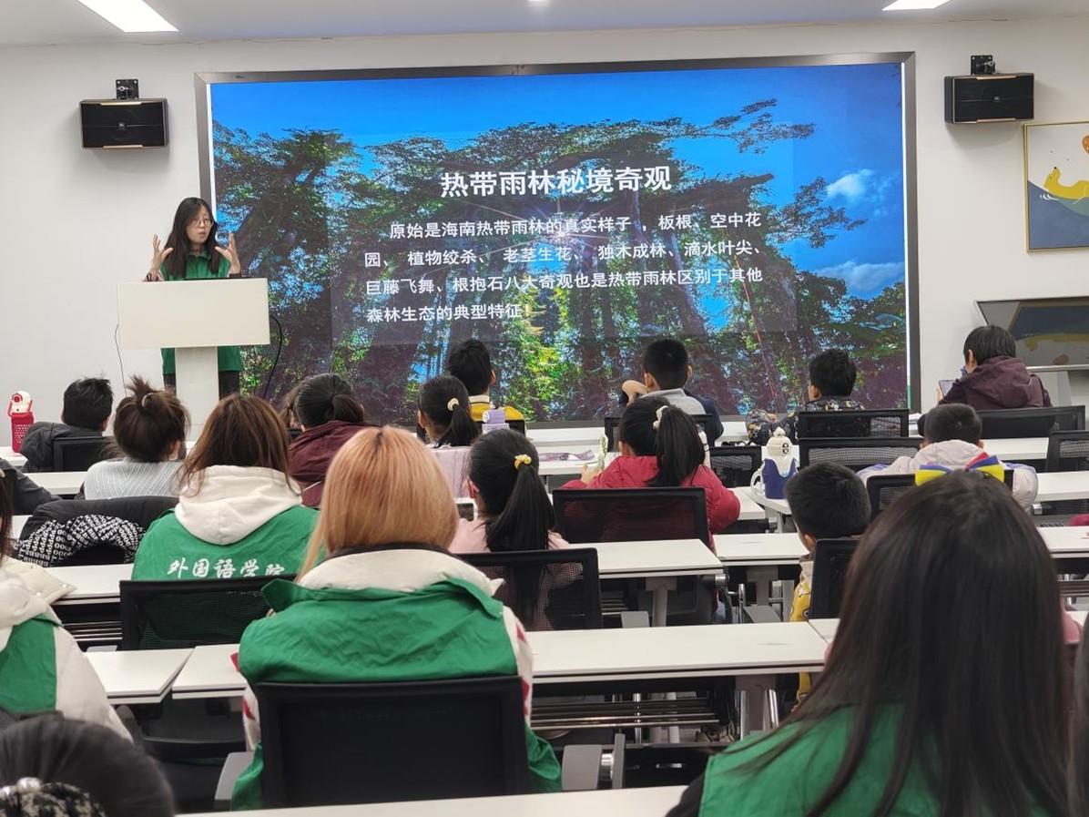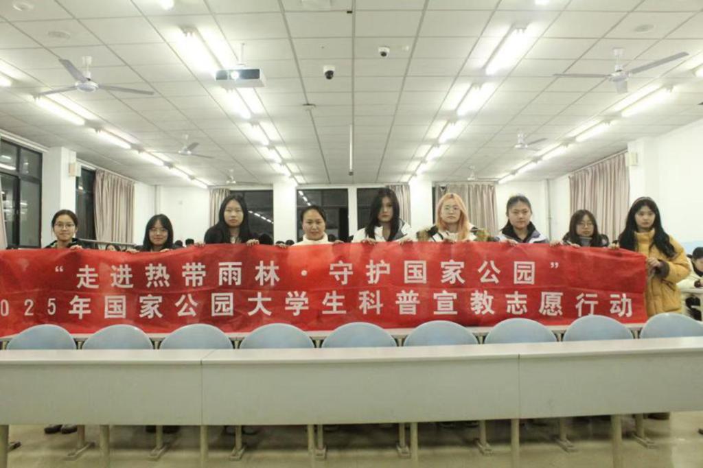 为深入普及国家公园理念,积极践行生态文明建设要求,2025年11月至12月,学院组建“雨林语盟·青译先锋”志愿宣讲团,围绕“走进热带雨林·守护国家公园”主题,走进社区、扎根校园,开展“科普+陪伴”与“专业+实践”双融合系列志愿服务活动,以外语特色传播生态文明,以青春行动守护绿水青山。