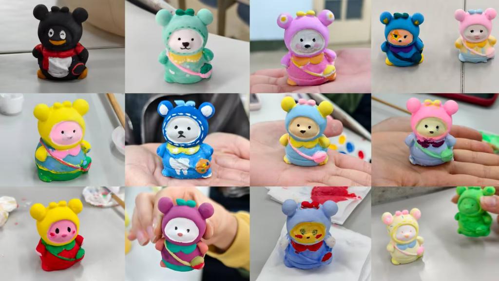 创作过程中,大家相互交流心得、分享绘画技巧,氛围热闹又轻松。经过一番精心创作,原本空白的陶瓷娃娃渐渐变得鲜活多彩,一件件不同风格的作品陆续完成。现场诞生了许多造型可爱、色彩丰富的作品,拍照记录以后,同学们带着自己亲手完成的作品离开,收获了满满的成就感。