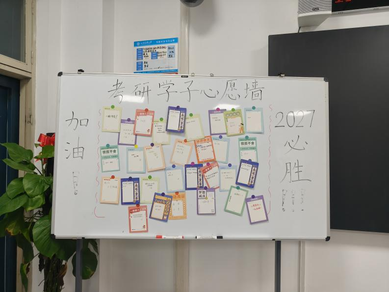 互动问答环节,同学们围绕择校困惑、复习方法及心态调整等问题踊跃提问,现场互动热烈,干货满满。活动尾声,在特别设置的考研心愿墙上,同学们纷纷提笔写下考研誓言,将初心落笔于纸,为奋斗之路注入坚定与力量。
