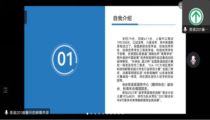 此次交流会邀请到了在上届专四考试中取得优异成绩的王潇雨,崔馨月,申佃骏,马欣鑫四名同学。主持人对其进行介绍后,四位同学依次为同学们答疑解惑,并就即将到来的专业四级考试复习方法和考试技巧做了丰富翔实的指导。