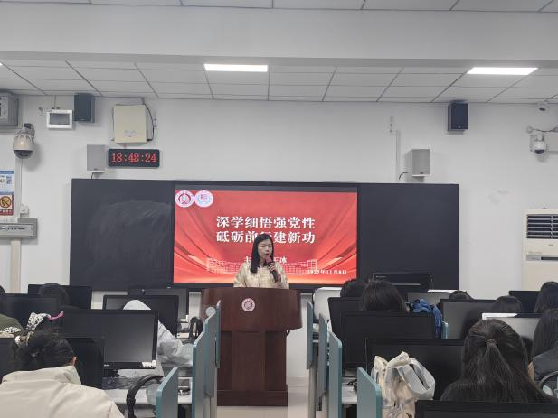 王冰以《端正入党动机,做合格党员》和《深学细悟强党性,砥砺前行建新功》为题讲授专题党课。她从“党的理论知识、入党动机、理想信念等方面展开剖析,强调身为入党积极分子和党员发展对象,要从行动上入党、从思想上入党,不辜负党和人民的信任与期望,同时,要坚定理想信念,明确发展方向,深刻领悟“两个确立”的决定性意义,增强“四个意识”、坚定“四个自信”、做到“两个维护”,做堪当强国建设、民族复兴重任的可靠接班人。随后王冰提出了具体要求,希望同学们将入党誓词入脑、入心、入行动,积极为群众服务,做到先人后己,甘于奉献,甘于平凡,抗牢肩上的责任担当。