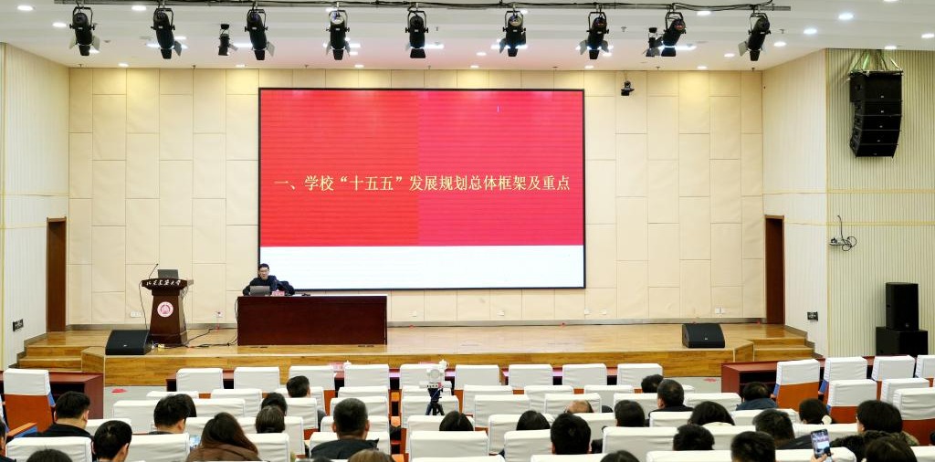 党委委员、副校长张志刚作专题报告,从学校“十五五”发展规划总体框架及重点、深刻领会党的二十届四中全会精神、山东省行业梳理、学校“十五五”需要着力解决的几个问题等四个方面,对学校编制“十五五”规划情况作了条理清晰、内容翔实的讲解和系统辅导。