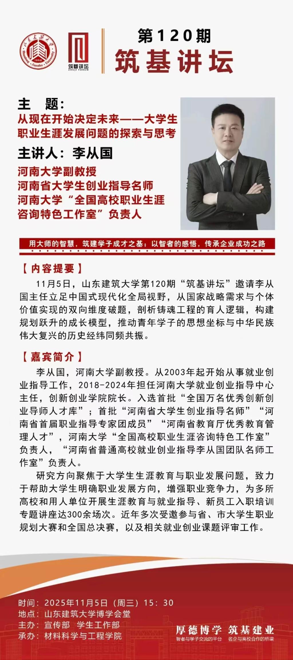 山东建筑大学第120期“筑基讲坛”预告