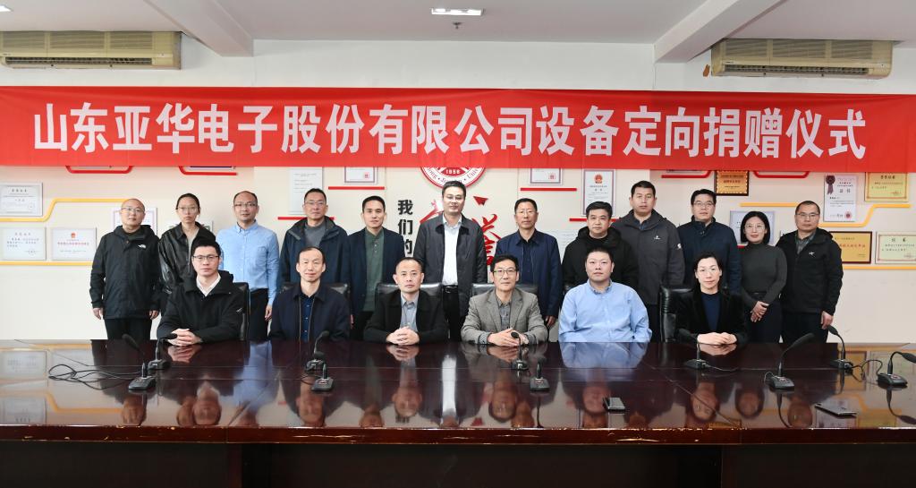 11月26日,山东亚华电子股份有限公司设备定向捐赠仪式在山东建筑大学BG319会议室隆重举行。山东建筑大学党委委员、副校长张志刚,实验室与设备管理处处长陈启辉,教务处处长何芹,合作发展办公室主任李文广,信息与电气工程学院党委副书记、院长李成栋,以及亚华电子副总经理、营销总监屈云庆,山东大区销售总监刘天成等校企双方代表出席。仪式由信息与电气工程学院党委书记李瑞学主持。