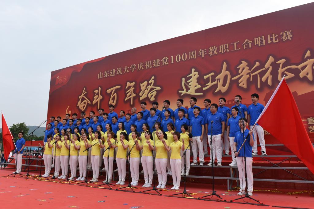 永远跟党走,逐梦新时代。为推动党史学习教育深入开展,庆祝建党100周年,6月24日下午,山东建筑大学“奋斗百年路,建功新征程”庆祝建党100周年合唱比赛在学校月泉广场举行。全校20支代表队,千余名教职工用歌声讴歌党的丰功伟绩,展示光辉奋斗历程,唱响时代主旋律。学校党委书记陈国前,学校党委副书记、校长于德湖,学校党委副书记祖爱民、张祥云,副校长刘甦,校党委委员、副校长吴彬,校党委委员、纪委书记、省监委驻学校监察专员王桂媛,校党委委员、副校长杨赟、郭益灵等校领导出席。