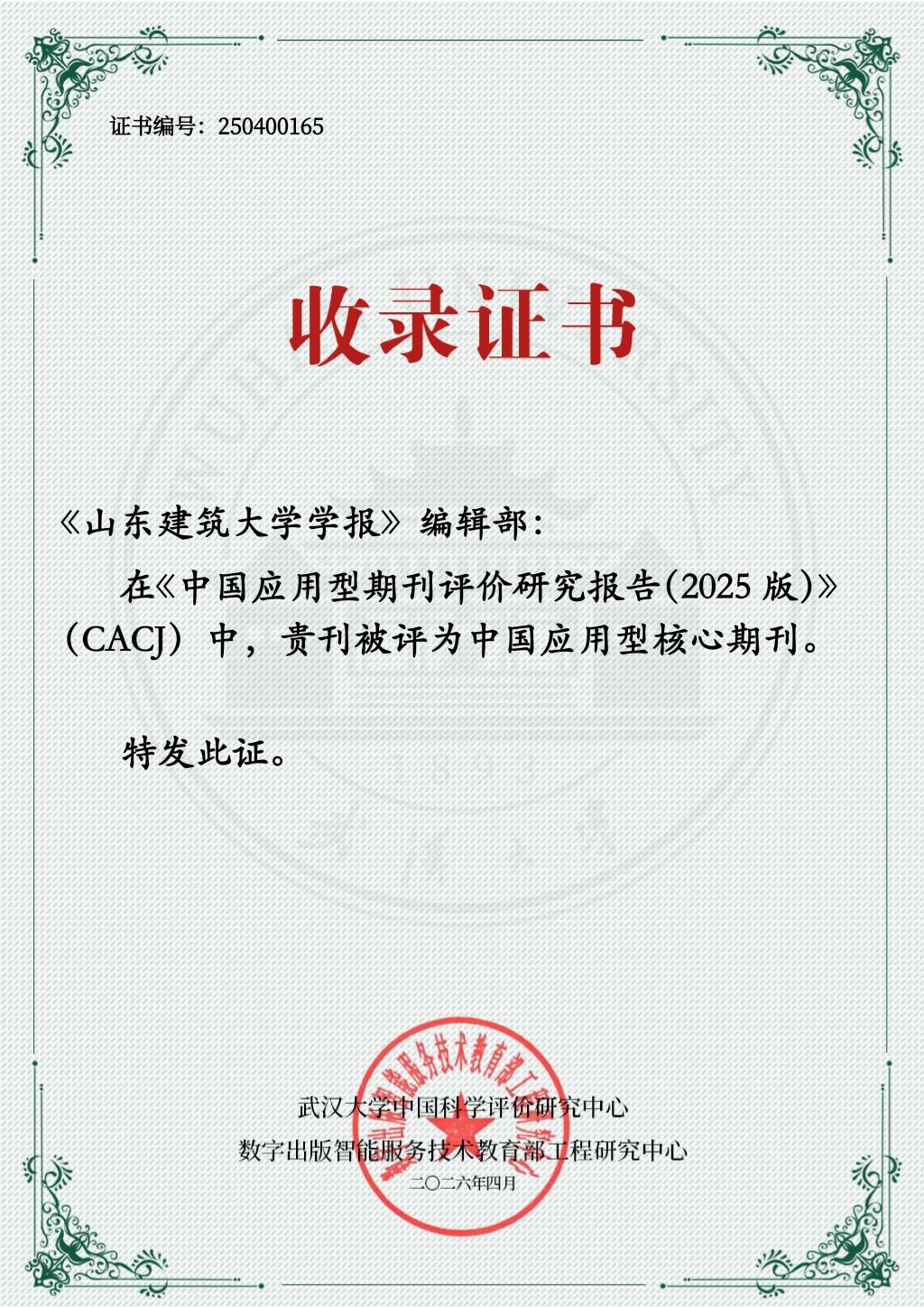 近日,由武汉大学中国科学评价研究中心、数字出版智能服务技术教育部工程研究中心联合研制的《中国应用型期刊评价研究报告(2025版)》正式发布。《山东建筑大学学报》成功入选“中国应用型核心期刊”。