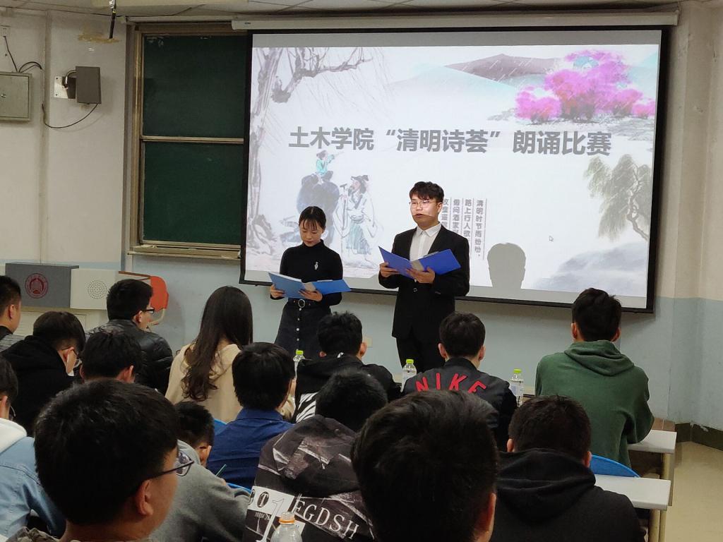 3月28日下午,土木工程学院“清明诗荟”朗诵比赛在BW307举行。