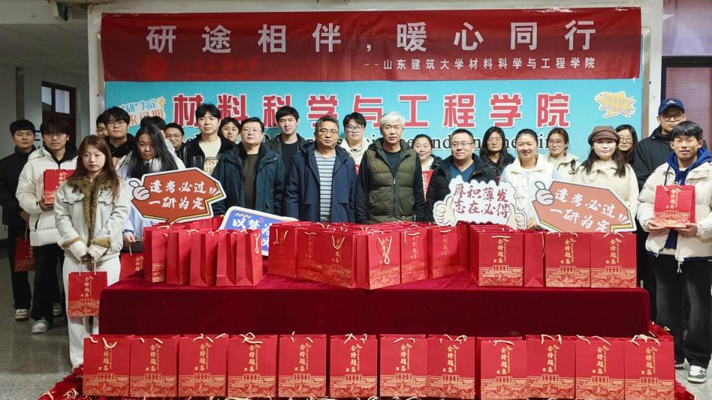 2026年全国硕士研究生招生考试临近,12月16日,材料科学与工程学院在济南本部与烟台基地同步开展“研途相伴,暖心同行”活动,为考研学子加油鼓劲。