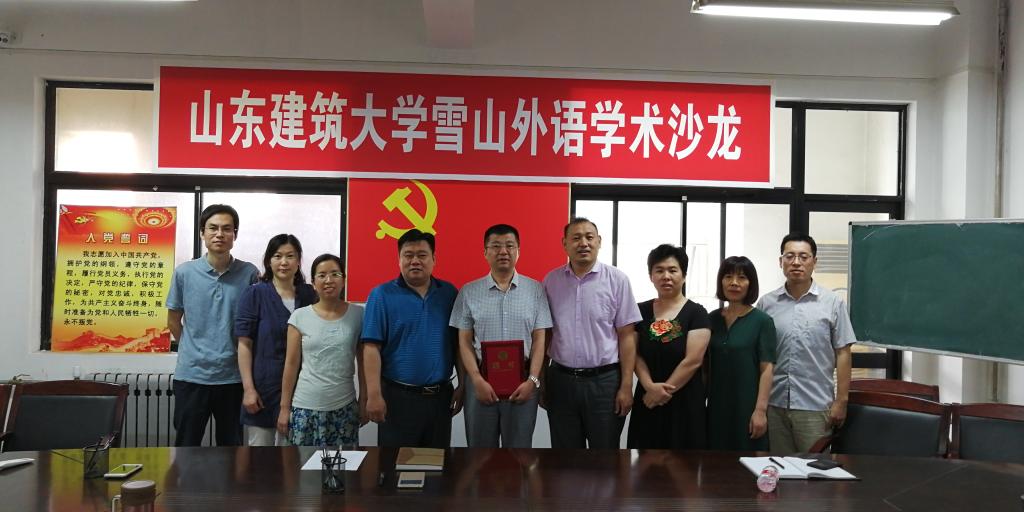 6月4日上午,西安理工大学延宏博士受聘山东建筑大学客座教授仪式暨雪山外语学术沙龙在外文楼同声传译室举行。来自建筑城规学院、管理学院、计算机学院、环境学院和机电学院的科研骨干教师及全校30余名研究生参与了会谈。外国语学院副院长李桂春主持仪式。