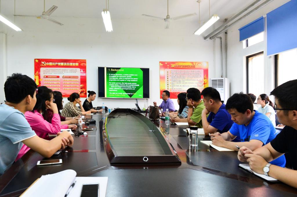 7月5日上午,美国蒙大拿州立大学计算机系教授、博士生导师朱滨海来我校进行学术交流,并作了题为“癌症基因组学中的相关问题”的学术报告。计算机学院副院长李晓峰,相关专业骨干教师、研究生等近20名师生参加了本次学术交流活动。