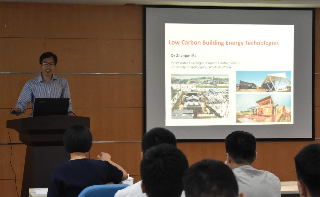 马贞俊博士作了题为“低碳建筑能源应用技术”的学术报告,马贞俊博士来自澳大利亚卧龙岗大学,曾指导学生改造的既有建筑作品夺得了2013年国际太阳能十项全能大赛决赛冠军。马贞俊博士重点介绍了他们设计并投入运行的净零能耗建筑-可持续建筑研究中心所采用的各种可再生能源利用技术。马贞俊博士也与大家分享了他指导的团队在溶液除湿空调领域,以及太阳能储能及相变材料领域所取得的成果。