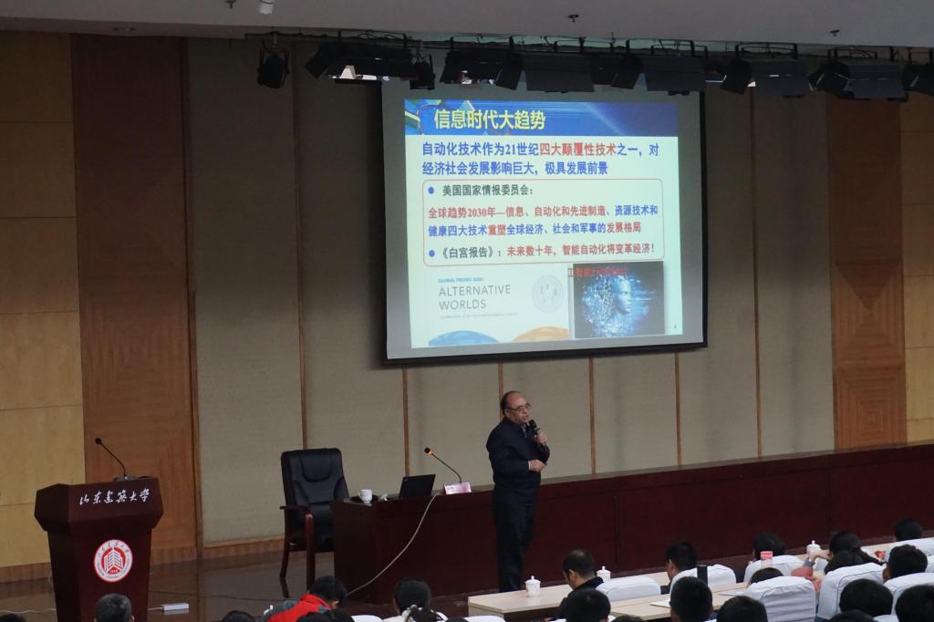 张承慧教授是山东大学控制科学与工程学院院长、博士生导师,教育部长江学者特聘教授,山东省泰山学者特聘教授,“电力电子节能技术与装备”教育部工程研究中心主任。张承慧教授的讲座以三次工业革命引出当今时代的发展趋势——信息化与工业化的深入融合,由此说明信电学子的发展路径要领。用恰当的历史人物作证明,总结“实干、表达、表现”的学生培养理念。告诫学生们要善于抓住机会,努力发展自己,勇于表现,敢于竞争。同时,他对学生培养做出三点要求:德行和意志培养、学术培养和综合能力培养。在德行与意志方面提出坚定信念,树立正确的人生观等六点要求;最后,总结出“走对了路、爱对了国、鼓足了劲、做对了事”的大学生发展路径要领。