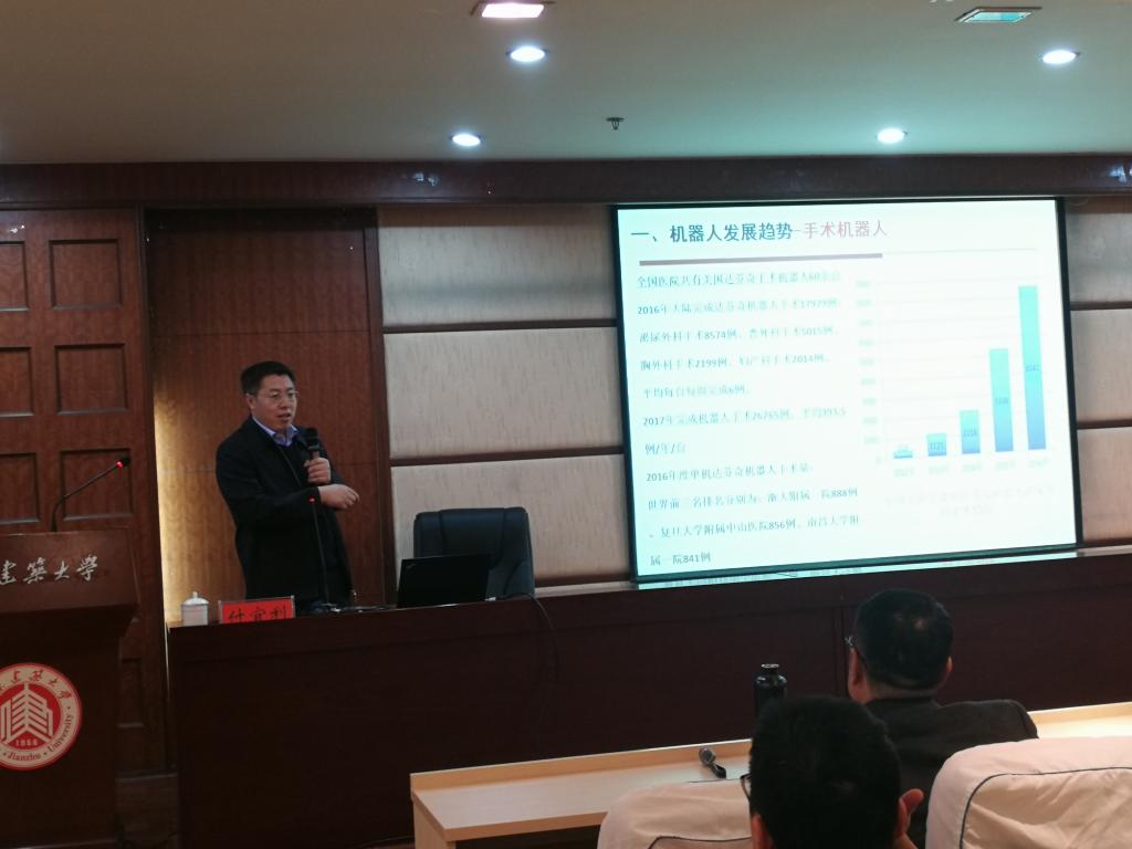 付宜利教授用丰富的图片和视频资料系统详实地介绍了工业机器人与智能机器人、手术机器人、服务机器人、空间机器人、仿生机器人等领域的国内外研究成果,就人工智能技术的国家战略与新特征、人机智能融合等问题作了深入的探讨,展示了课题组在腹腔微创手术机器人、基于多模态信息人机交互控制、基于深度学习的人脸3D识别技术、基于激光的服务机器人SLAM技术、服务机器人智能语音交互技术、双臂机器人协调操作技术、智能仿生机器人研究等方面的相关研究工作。学术报告结束后,参会师生与付宜利教授进行了深入的互动交流,并纷纷表示受益匪浅。最后,郑忠才对付宜利教授作的精彩报告表示感谢,并希望以此为契机进行更加深入的合作,促进学院学科专业的建设与发展。