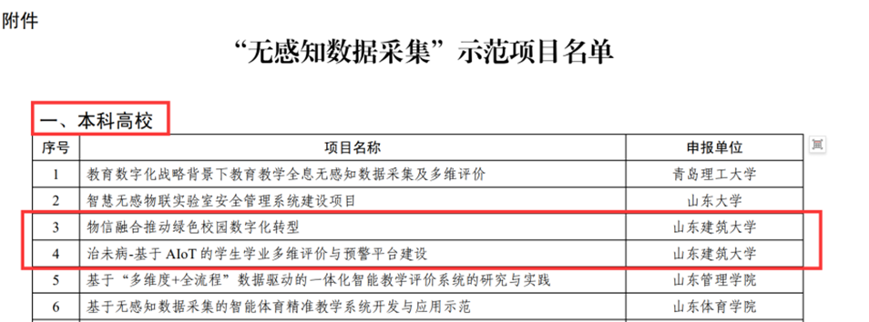 山东建筑大学两项目入选山东省教育厅“无感知数据采集”示范项目