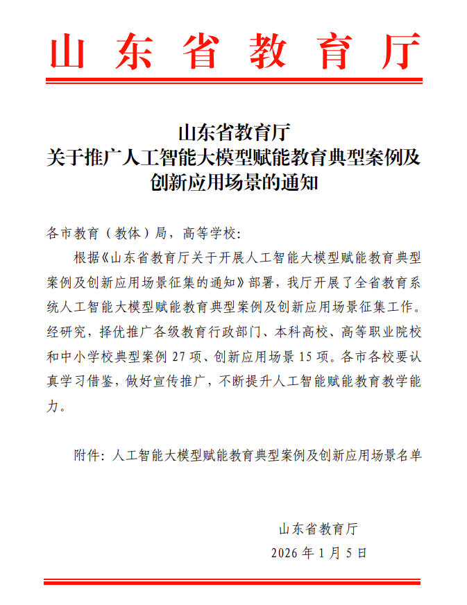 7月4日上午,山东建筑大学人工智能工程技术应用研究院揭牌仪式暨“山建大智思体”教育大模型平台发布活动在学校博学会堂举行。山东省教育厅总督学王志刚,济南市大数据局党组成员、副局长梁甲猛,山东省教育厅数字教育处处长丛培军,山东信息协会会长周传玉,山东大学教授、山东省人工智能学会理事长尹义龙;山东建筑大学党委书记杨景波,党委副书记、校长于德湖,党委副书记黄晓广等出席仪式。仪式由山东建筑大学副校长赵继龙主持。