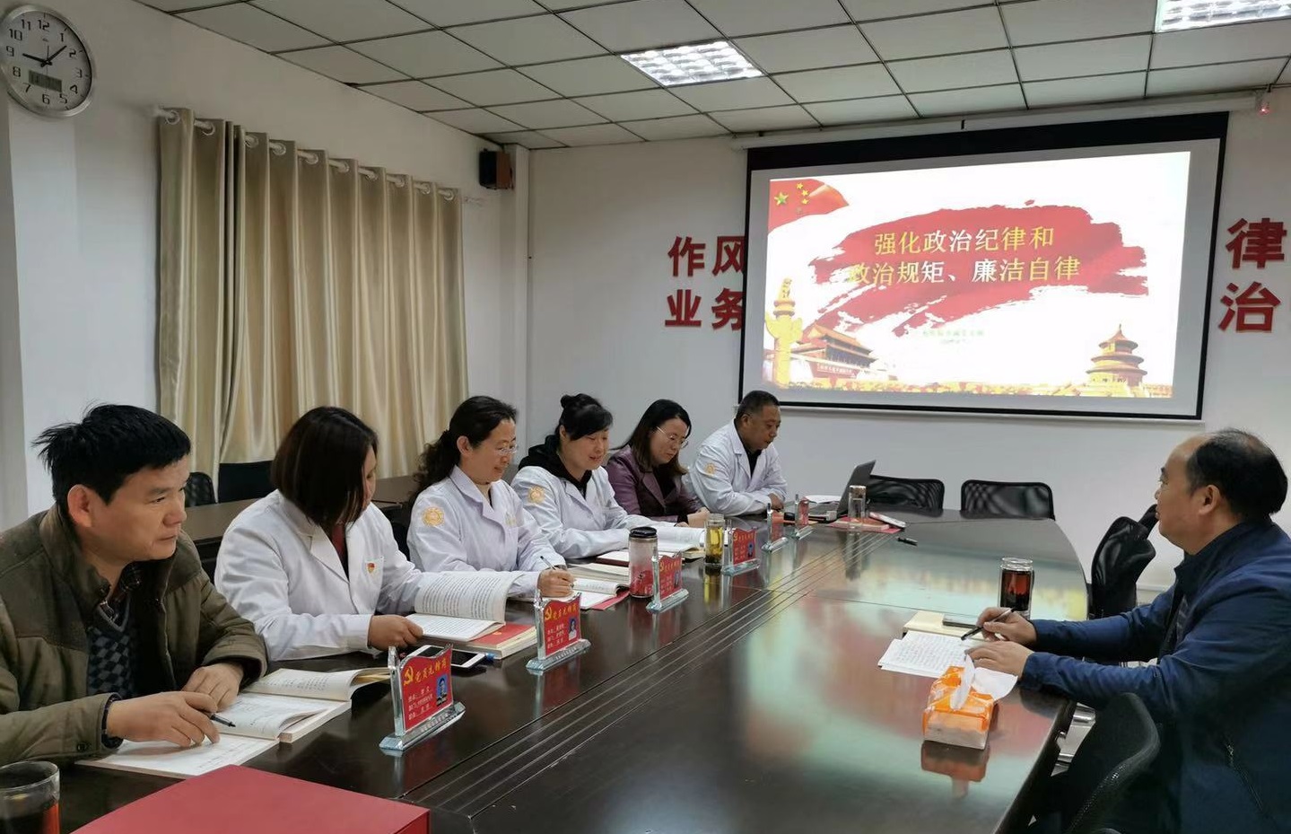 11月7日上午,校医院直属党支部在新校区校医院宣教室开展“党员先锋岗”授牌仪式,会议由书记宗建国主持。