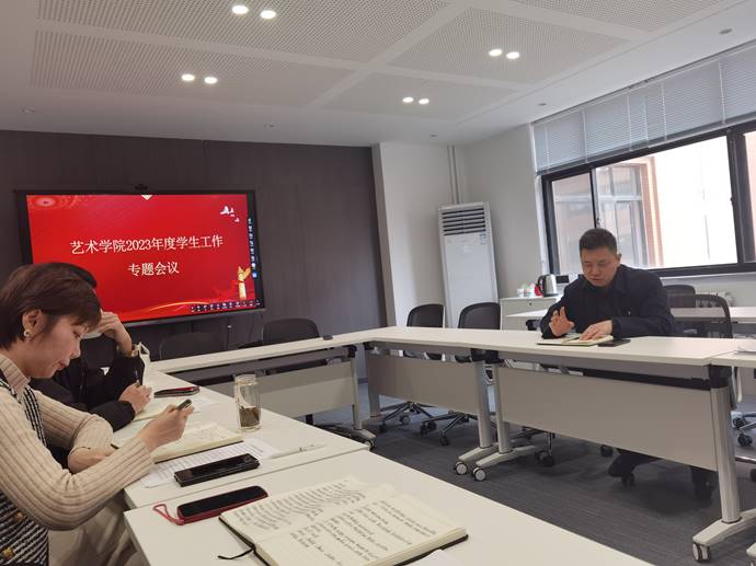 2023年2月17日上午,艺术学院在326会议室召开2023学年春季学期学生工作专题会议,艺术学院党委书记倪文豪、党委副书记李琳琳和团委学生科全体辅导员参会,艺术学院党委副书记李琳琳主持会议。