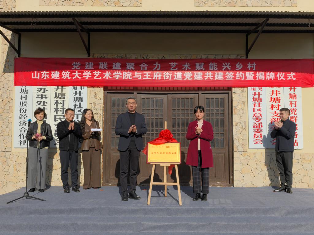 11月26日上午,山东建筑大学艺术学院与青州市文化和旅游局、王府街道办事处在井塘古村文化广场隆重举行党建共建签约暨“王府街道文旅产业发展共同体”揭牌仪式。山东建筑大学艺术学院党委书记盛红梅、院长陈淑飞、副院长王志远以及景观党支部党员代表参加此次共建活动。