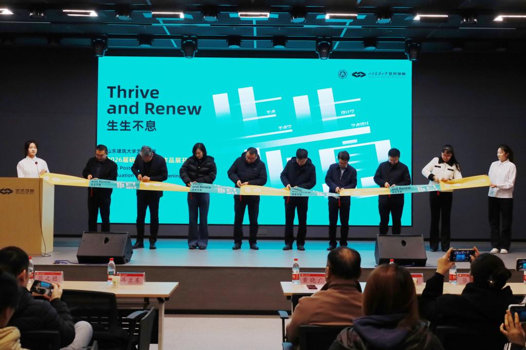 最后,黄晓广与校职能部门负责人、艺术学院党政负责人共同为展览剪彩,标志着2026届研究生毕业作品展正式开幕。开幕式结束后,与会领导和师生前往山东建筑大学艺术馆、艺术学院艺展馆参观毕业作品展。